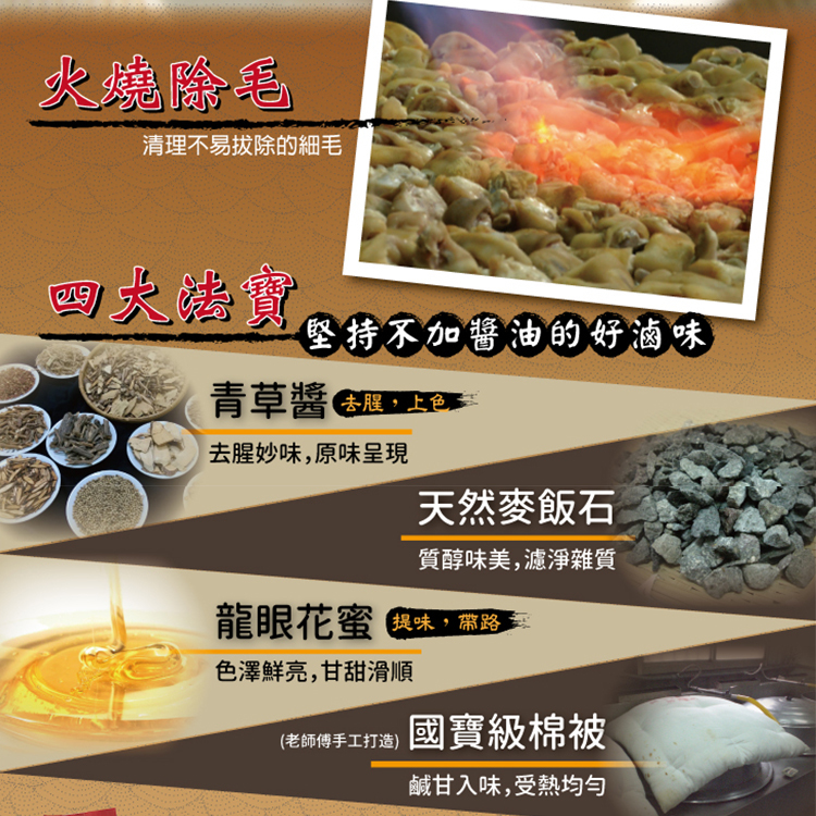 ● 純正龍眼花蜜提味,草本青草取代傳統醬油,清甜不膩口的好滷味!
