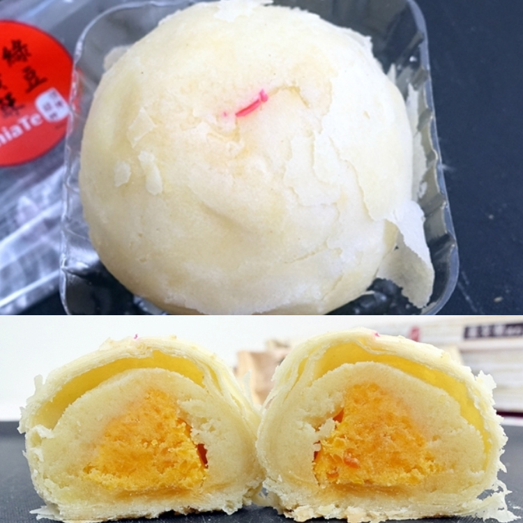 綠豆沙中間包覆鹹蛋黃,甜中帶鹹,入口即化,沒吃過就太可惜了!