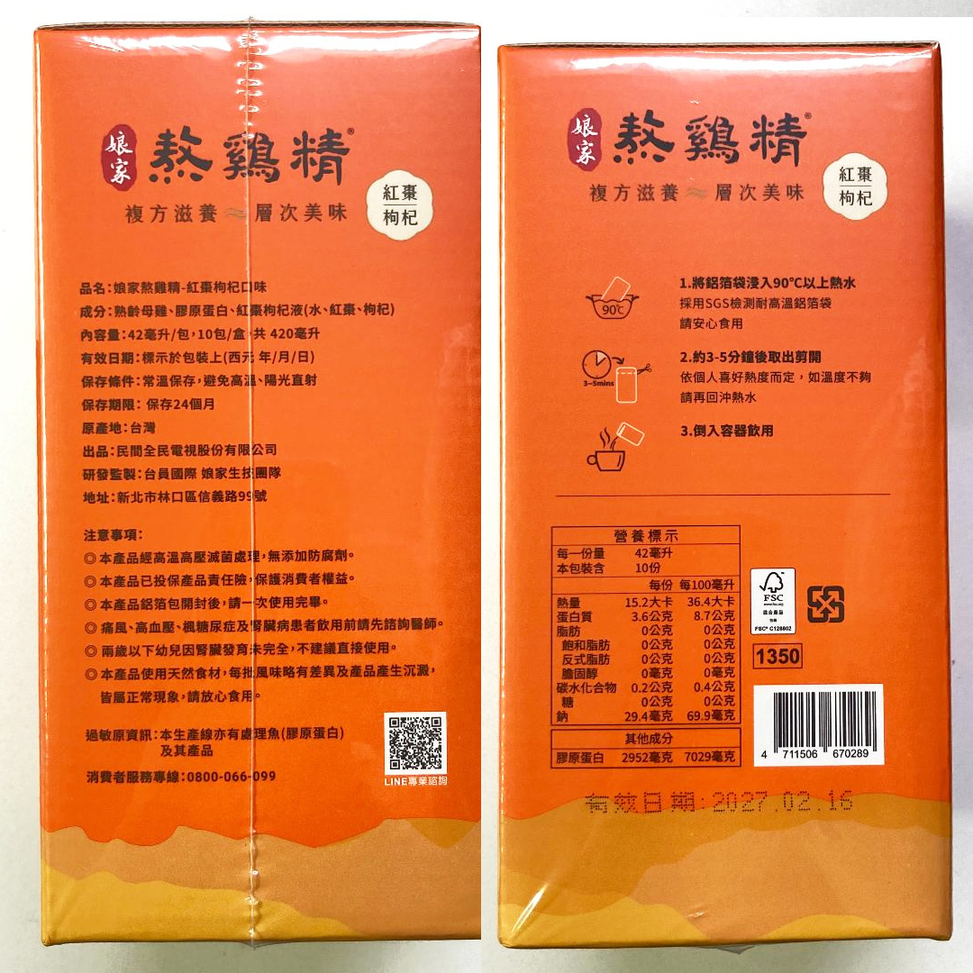 娘家複方熬雞精 - 紅棗枸杞10入 (食用期:27年2月)