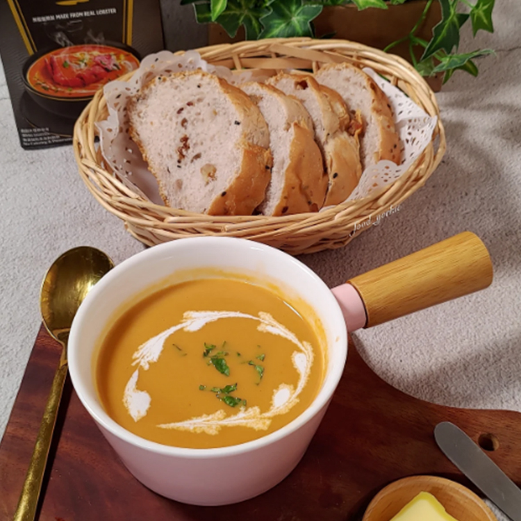 這款龍蝦濃湯也很適合拿來煮麵或煮燉飯,每一口都很鮮香!拿來煮辛拉麵,把其中一半的湯用龍蝦濃湯來替代,立馬升級成為高級感十足的蝦湯拉麵!蝦味濃郁,連吃泡麵都有儀式感!
