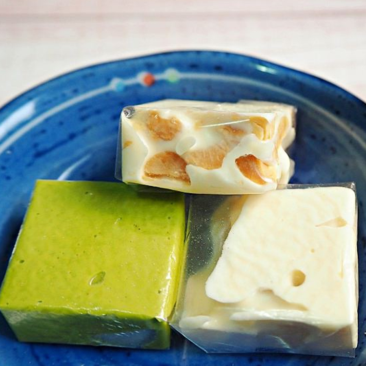 | 成分 | 麥芽糖、花生、發酵無鹽奶油、糖、全脂奶粉、蛋白、鹽 | 麥芽糖、夏威夷豆、發酵無鹽奶油、糖、全脂奶粉、蛋白、鹽 | 麥芽糖、夏威夷豆、發酵無鹽奶油、糖、全脂奶粉、蛋白、抹茶粉、鹽 |
