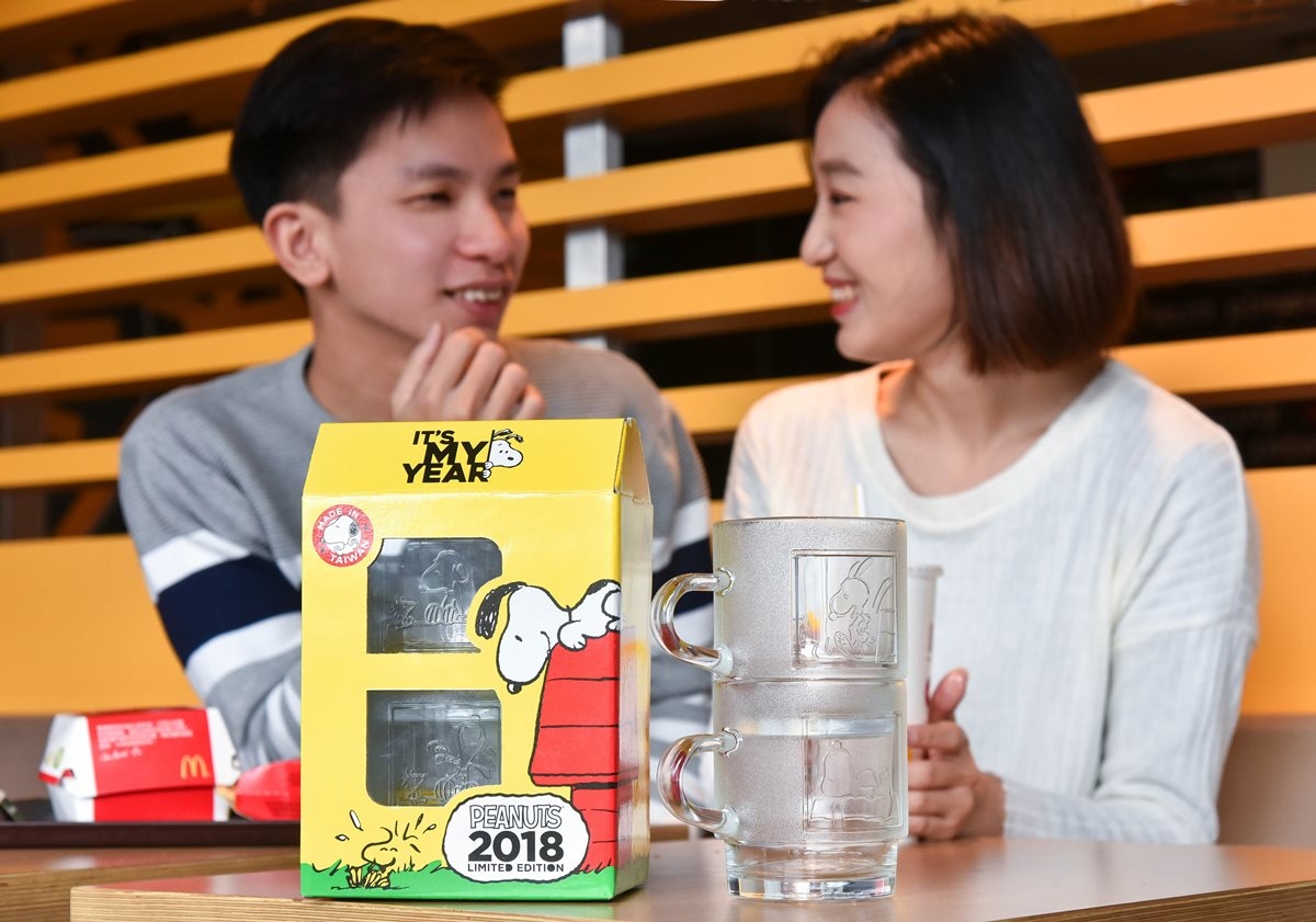 經典卡通人物史努比(Snoopy)在全球場擁有超過3.5億的粉絲!萌萌的形象不論是聯名彩妝、時尚,總是引爆人氣話題。這次麥當勞與PEANUTS聯手,推出台灣獨家的「史努比光雕對杯」,以精巧的台灣玻璃工藝,將四款經典的史努比漫畫圖樣以光雕浮刻在對杯上,凹凸刻痕反映光影,更顯立體。而390ml的大容量,可堆疊收藏,實用、時尚而且好收納。為了同時滿足粉絲收藏或送禮的精緻感,禮盒設計也充滿巧思,不僅配色繽紛經典,還可變化為可愛的狗屋造型,備增趣味。