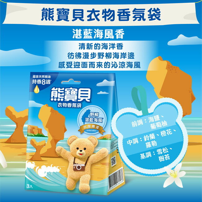 【熊寶貝】衣物香氛袋-野柳湛藍海風18g/盒