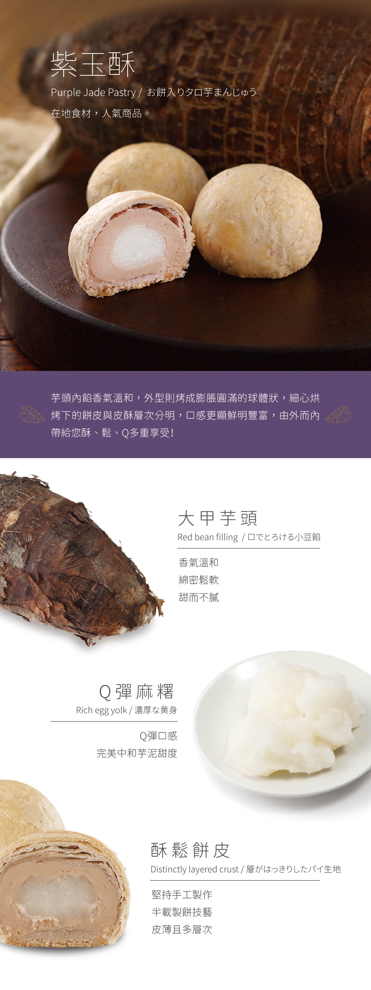 以大甲芋頭及良質米為開發概念,由外而內可品嚐到酥、鬆、Q多重口感,裕珍馨的人氣商品之一。